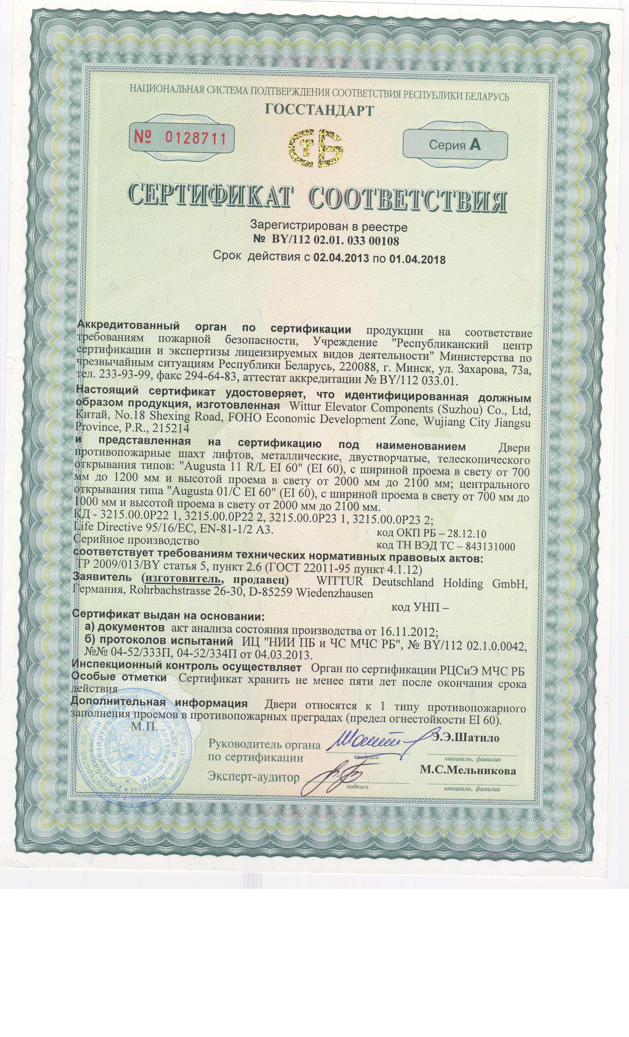 Сертификат соответствия продукции на соответствие требованиям пожарной безопасности