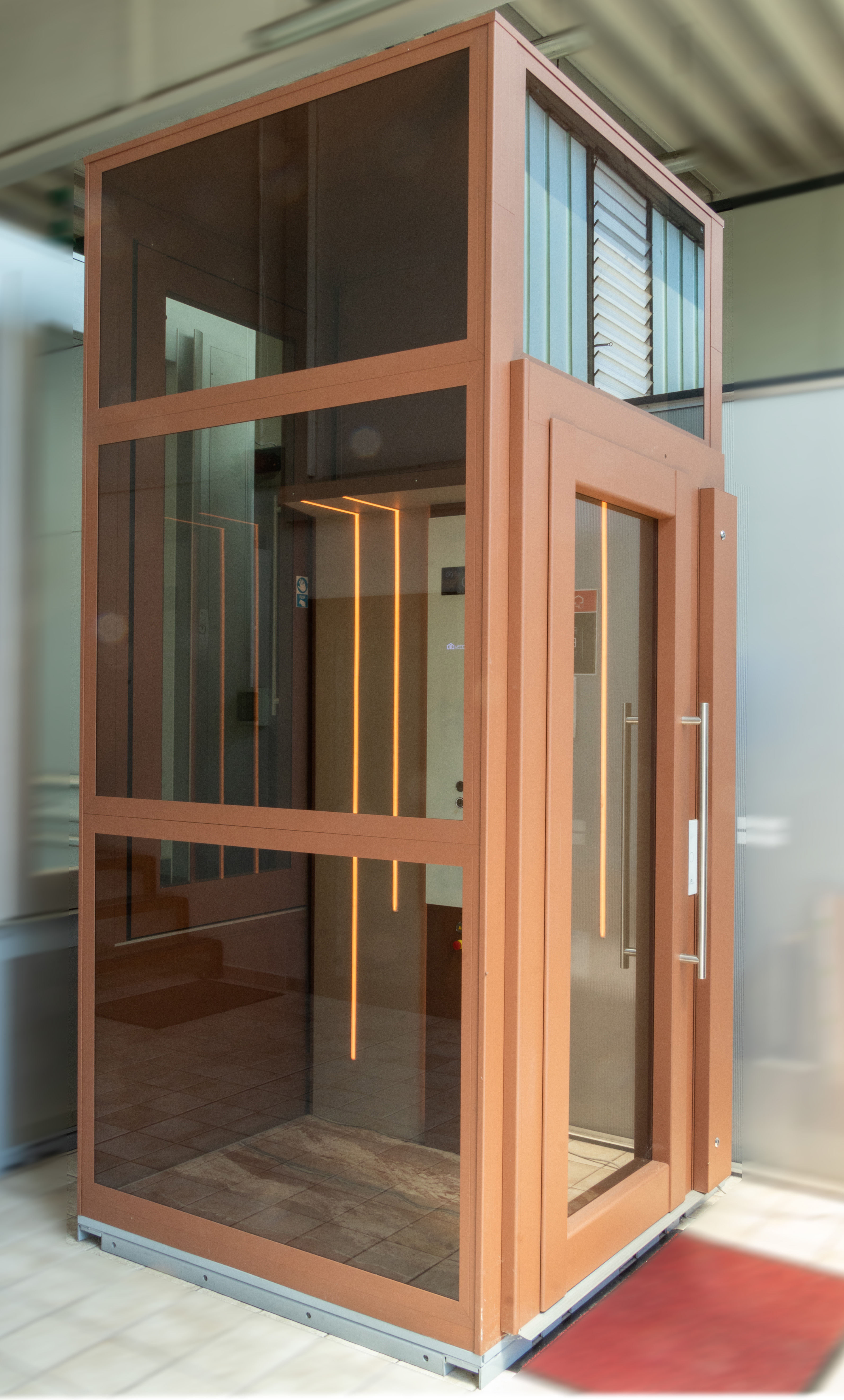 Нет необходимости во внешних шкафах или машинных отделениях, поскольку двигатель и панель управления находятся внутри контура платформы.